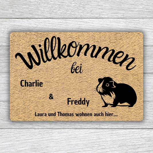 Individuell gestaltbare Meerschweinchen Fußmatte mit Tiernamen – Willkommen bei – 60x40 cm