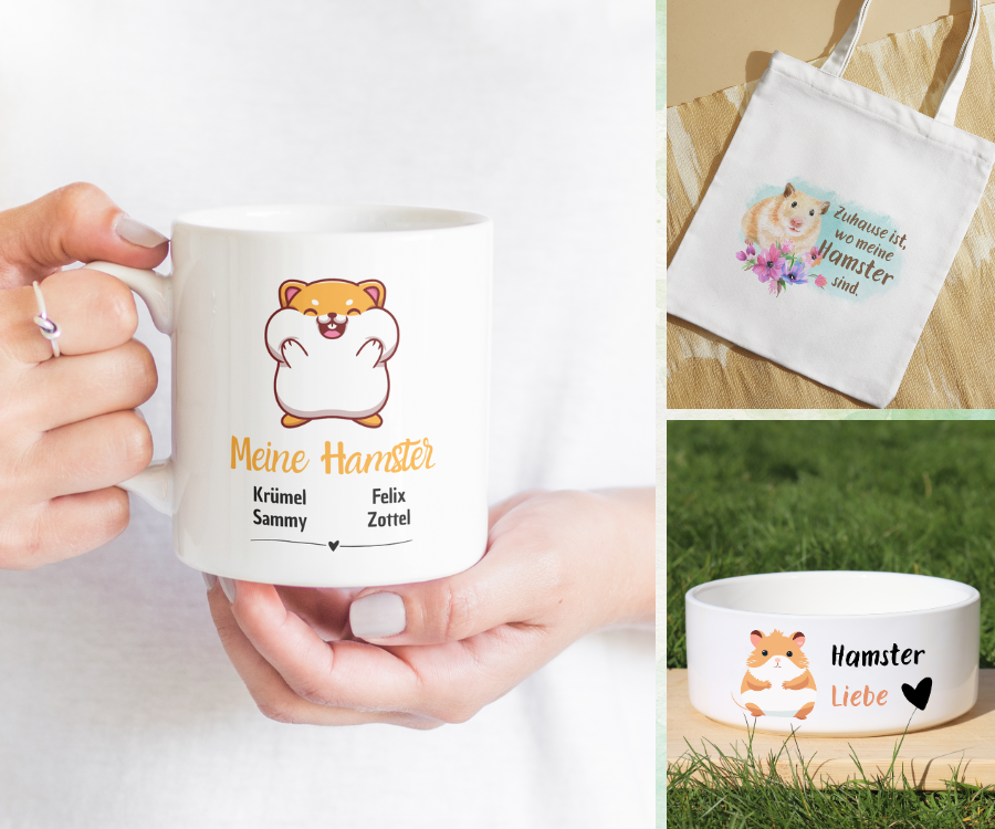 Vielen Dank für die tolle Abwicklung liebe Madline - alle Hamsterartikel (Tasche, Napf, Kissen, Pullover, Tasse, Weihnachtsstrumpf) sind wunderschön😊! Ich würde immer wieder bestellen☺️!