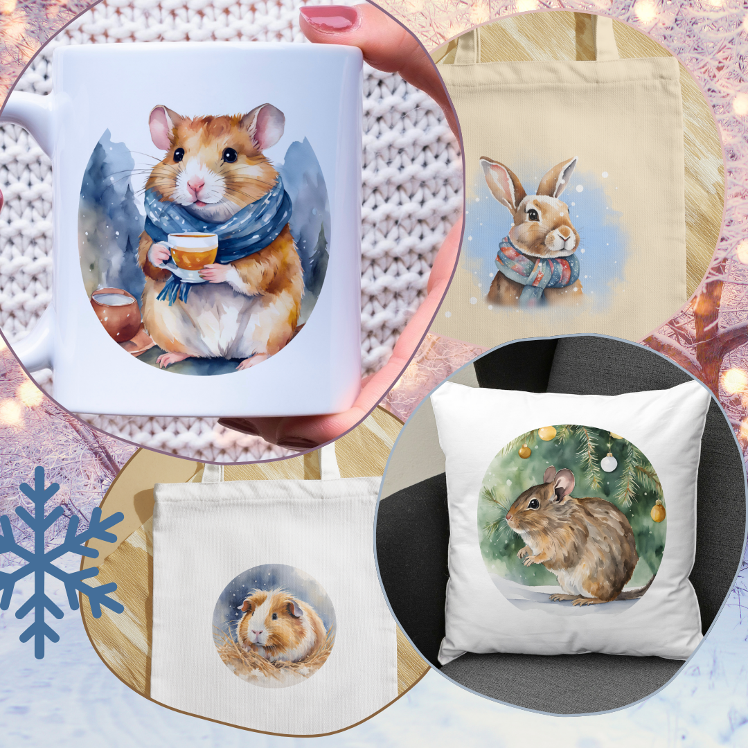 Kuschelige Pullis mit Degu-, Kaninchen-, Meerschweinchen-, Hamster- & Ratten-Motive.
