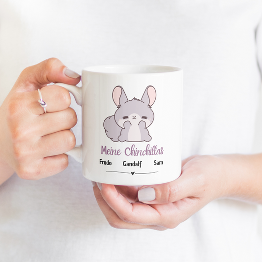- Personalisierte Tassen: Mit süßen Chinchilla-Motiven und der Möglichkeit, die Namen deiner Fellnasen aufdrucken zu lassen – das perfekte Geschenk für den Morgenkaffee!