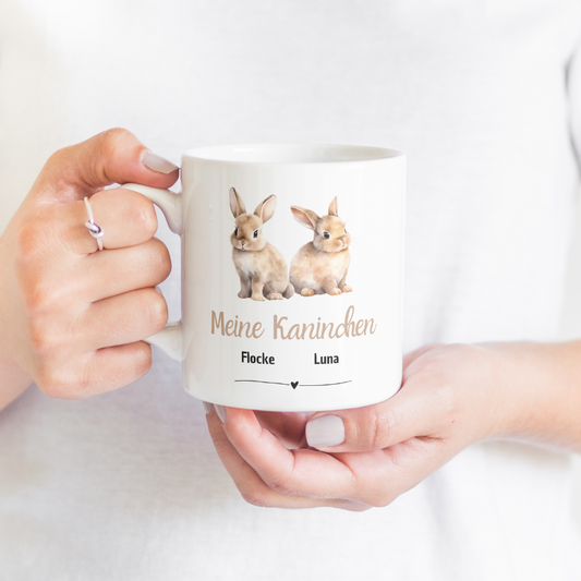 - Personalisierte Tassen mit niedlichen Kaninchenmotiven und sogar der Möglichkeit, den Namen deiner eigenen Fellnase aufdrucken zu lassen.