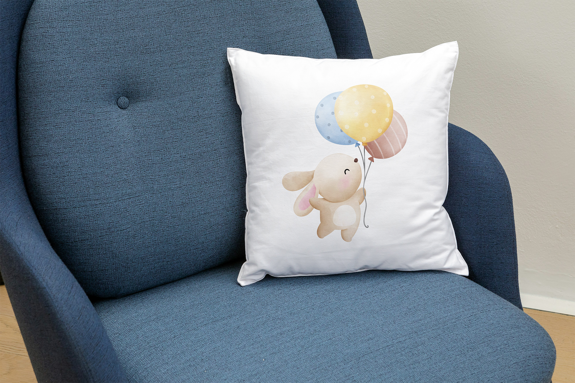 Kissen Kaninchen mit Luftballons